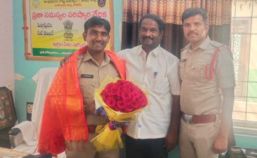 జగ్గంపేట, ( జిల్లా వాణి ప్రతినిధి) మార్చి 10:కాకినాడ జిల్లా జగ్గంపేట సర్కిల్ ఇన్స్పెక్టర్ (సి.ఐ.)గా నూతనంగా బాధ్యతలు స్వీకరించిన బి. తిరుపతిరావును సోమవారం కాట్రావులపల్లి గ్రామ తెలుగుదేశం పార్టీ అధ్యక్షులు ముసిరెడ్డి నాగేశ్వరరావు మర్యాదపూర్వకంగా కలిసి శుభాకాంక్షలు తెలియజేశారు. ఈ సందర్భంగా ముసిరెడ్డి నాగేశ్వరరావు మాట్లాడుతూ.. గతంలో గండేపల్లి, కిర్లంపూడి పోలీస్ స్టేషన్లలో సబ్ ఇన్స్పెక్టర్ గా తిరుపతిరావు సమర్థవంతంగా పనిచేశారని గుర్తుచేశారు. ఇప్పుడు సి.ఐ.గా కూడా శాంతిభద్రతలను పరిరక్షిస్తూ, లా అండ్ ఆర్డర్ కాపాడడంలో తనదైన ముద్ర వేయాలని కోరారు. అసాంఘిక కార్యకలాపాలు, జూదంపై ఉక్కుపాదం మోపాలని, మాదకద్రవ్యాల నియంత్రణకు కఠిన చర్యలు తీసుకోవాలని, ప్రజలకు అందుబాటులో ఉంటూ మంచి పేరు తెచ్చుకోవాలని ఆకాంక్షించారు. ఈ కార్యక్రమంలో జగ్గంపేట సబ్ ఇన్స్పెక్టర్ టి. రఘునాథరావు తదితరులు పాల్గొన్నారు.