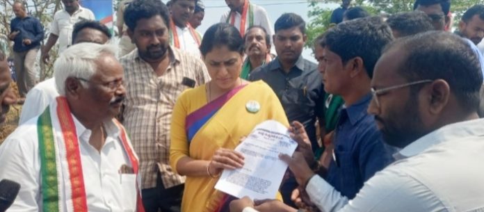 మండలం లో ఉపాధి పరిరక్షణ యాత్రలో భాగంగా పిసిసి అధ్యక్షురాలు వై ఎస్ షర్మిల పర్యటన సందర్బంగా జిల్లా కాంగ్రెస్ నాయకులు మేడేటి శంకర్ ఆధ్వర్యంలో నక్కపల్లి మండలానికి చెందిన మత్స్య కార నాయకులు శనివారం వై ఎస్ షర్మిల కు వినతి పత్రం అందజేశారు. ఈ మేరకు ఆంధ్రప్రదేశ్ మత్స్య కార జె.ఏ.సి రాష్ట్ర ప్రధాన కార్యదర్శి కోదండరాం మాట్లాడుతూ మత్స్య కార యువతకు తీరప్రాంతాలలో ఏర్పాటు చేసే మెరైన్ పోలీస్ స్టేషన్,సాగర మిత్ర తదితర వాటిలో ప్రభుత్వ ఉద్యోగాలు ఇచ్చేలా కృషి చేయాలని కోరారు. ఈ కార్యక్రమం లో మత్స్య కార నాయకులు పాల్గొన్నారు.