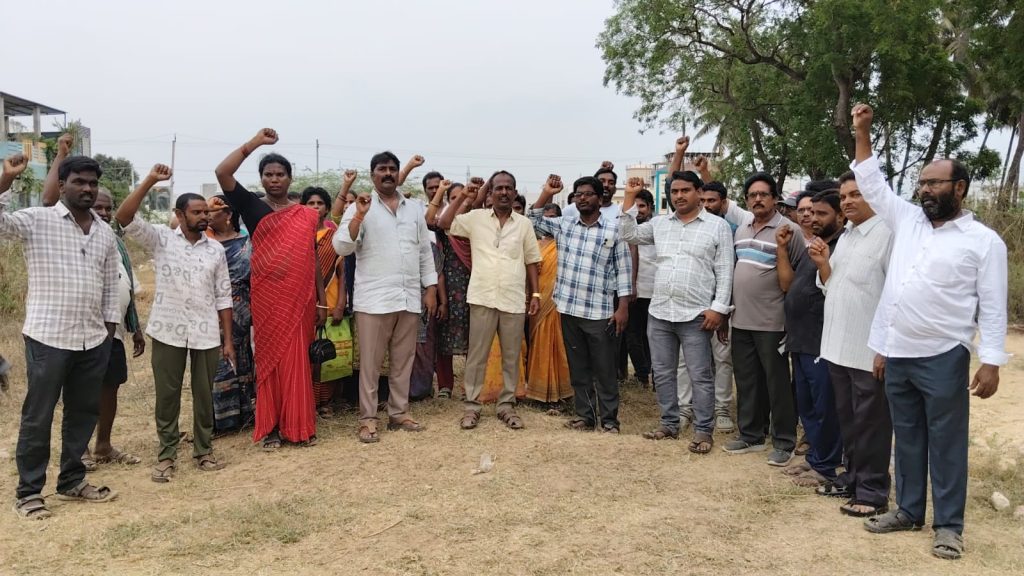 జగ్గంపేట, మార్చి 21(జిల్లా వాణి ప్రతినిధి): జగ్గంపేట పంచాయతీ పరిధిలోని డైవర్స్ కాలనీ లబ్ధిదారులకు 16 ఏళ్ల క్రితం కేటాయించిన పట్టాలను రద్దు చేసే ఆలోచనను ప్రభుత్వం తక్షణమే విరమించుకోవాలని ఆంధ్రప్రదేశ్ రైతు కూలీ సంఘం రాష్ట్ర ప్రధాన కార్యదర్శి కర్నాకుల వీరాంజనేయులు, వైఎస్సార్సీపీ నాయకులు, ఉప సర్పంచ్ బండారు రాజా డిమాండ్ చేశారు. శనివారం డైవర్స్ కాలనీలో రైతు కూలీ సంఘం ఆధ్వర్యంలో ఏర్పాటు చేసిన నిరసన కార్యక్రమంలో వారు పాల్గొని మాట్లాడారు. 170 కుటుంబాల భవిష్యత్తుతో ఆడుకోవద్దు ఈ సందర్భంగా నేతలు మాట్లాడుతూ, 2010లో సర్వే నంబర్ 196/2లో సుమారు 4 ఎకరాల 73 సెంట్ల భూమిని 170 మంది పేద లబ్ధిదారులకు ఇళ్ల పట్టాల రూపంలో పంపిణీ చేసినట్లు గుర్తు చేశారు. లబ్ధిదారులు నిరుపేదలు కావడం వల్ల, ఆర్థిక స్తోమత లేక ఇళ్ల నిర్మాణం చేపట్టలేకపోయారని, కొందరు అప్పులు చేసి ఇళ్లు నిర్మించుకున్నారని తెలిపారు.రాజకీయ కక్షసాధింపుతో ఇప్పుడు నిరుపేదల పట్టాలను రద్దు చేసి, కూటమి ప్రభుత్వ కార్యకర్తలకు కట్టబెట్టాలని చూడటం దుర్మార్గమని వారు విమర్శించారు. బాధితులు ఈ కాలనీలో డ్రైవర్లు, ఆశా వర్కర్లు, హిజ్రాలు వంటి నిరుపేద వర్గాల వారు ఉన్నారని, గతంలో వారంతా తలా రూ. 5 వేలు పోగు చేసుకుని సొంతంగా విద్యుత్ సౌకర్యం కల్పించుకున్నారని పేర్కొన్నారు. మౌలిక వసతులు కల్పించాలిపట్టాల రద్దు ఆలోచనను పక్కన పెట్టి, కాలనీలో కనీస సౌకర్యాలైన సీసీ రోడ్లు, వాటర్ ట్యాంకులు, మరుగుదొడ్లు, డ్రైనేజీ వ్యవస్థలను ఏర్పాటు చేయాలని వారు ప్రభుత్వాన్ని డిమాండ్ చేశారు. లబ్ధిదారులకు అన్యాయం జరిగితే సహించేది లేదని, వారికి అండగా ఉంటామని భరోసా ఇచ్చారు. సోమవారం ‘చలో కాకినాడ కలెక్టరేట్’ఈ సమస్యపై ప్రభుత్వంపై ఒత్తిడి తెచ్చేందుకు సోమవారం నాడు ‘చలో కాకినాడ కలెక్టరేట్’ కార్యక్రమాన్ని చేపడుతున్నట్లు వారు పిలుపునిచ్చారు. లబ్ధిదారులందరూ పెద్ద ఎత్తున తరలివచ్చి తమ నిరసనను తెలియజేయాలని కోరారు. ఈ నిరసన కార్యక్రమంలో ఆంధ్రప్రదేశ్ రైతు కూలీ సంఘం జిల్లా సహాయ కార్యదర్శి కె. సతీష్, డాన్ శ్రీను, వాసు, శ్రీను, సత్తిబాబు, తాతాజీ, వెంకటలక్ష్మి, కుమారి, బాబ్జి, శ్రీనివాస్ మరియు అధిక సంఖ్యలో లబ్ధిదారులు పాల్గొన్నారు.