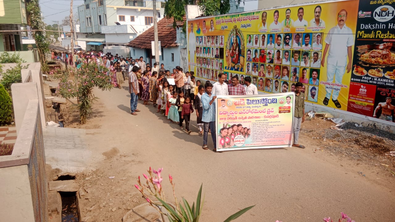బడి పిలుస్తోంది కార్యక్రమం ప్రభుత్వ పాఠశాల ప్రాముఖ్యతపై అవగాహన ర్యాలీ.