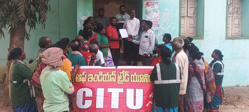 అచ్చుతాపురం మండలంలో వివిధ గ్రామాల్లో పంచాయతీ కార్మికుల సమస్యలు పరిష్కరించాలని ర్యాలీ నిర్వహించి ఎంపీడీవో ఆఫీస్ వద్ద ధర్నా చేసి ఎంపీడీవోకి వినతి పత్రం అందజేయడం జరిగింది. ఈ సందర్భంగా పంచాయతీ కార్మిక సంఘం ఆడారి నాగేశ్వరరావు, సిఐటియు కన్వీనర్ కే సోమనాయుడు మాట్లాడుతూ పంచాయతీ కార్మికులుగా ప్రజలకు నిరంతరం సేవలు అందిస్తూ గ్రామాల్లో కాలువలు రోడ్లు శుభ్రం చేస్తున్న వీరికి మాత్రం కనీస వేతనాలు అమలు చేయడం లేదు ప్రభుత్వం ప్రతి పంచాయతీలో పంచాయతీ కార్మికులకు నెలకు 10000 రూపాయలు ఇవ్వాలని ప్రభుత్వం చెబుతున్న ఆచరణలో అమలు కావడం లేదు ఎన్నోసార్లు అధికారుల దృష్టికి తీసుకెళ్లిన వేతనాలు పెంచడం లేదు దీంతో పంచాయతీ కార్మికులు అర్ధాకులతో జీవిస్తున్నారు ప్రభుత్వం వెంటనే పంచాయతీ కార్మికులందరికీ గుర్తింపు కార్డులు ఇచ్చి నెలకు 16,000 జీతం పెంచాలని ఈఎస్ఐ పీఎఫ్ వంటి సౌకర్యాలు కల్పించి వారంలో ఒకరోజు సెలవు ఇవ్వాలని బకాయి వేతనాలు ఇవ్వాలని పనిముట్లు పంపిణీ చేయాలని కోరారు. ఈ కార్యక్రమంలో జిల్లా కార్యదర్శి ఆర్ రాము, పంచాయతీ వియ్యపు లక్ష్మి ముప్పిడి కళ్యాణి దోసూరు నాగమణి బద్ది అప్పారావు తెల్లారి లక్ష్మి చేపల అప్పారావు తదితరులు పాల్గొన్నారు.