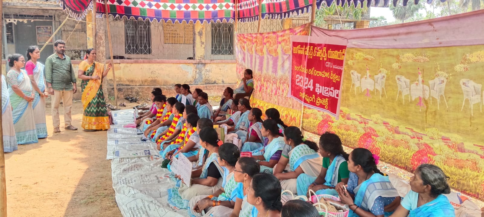 పోలవరం జిల్లావాణి ప్రతినిధి : రాష్ట్రవ్యాప్తంగా సిఐటియు పిలుపు మేరకు సిఐటియు ఆధ్వర్యంలో అంగన్వాడి వర్కర్ల సమస్యలు పరిష్కారం కొరకు 2వ రోజు ప్రాజెక్టు స్థాయి రిలే నిరాహార దీక్షలను అంగన్వాడి వర్కర్స్ అండ్ హెల్పర్స్ యూనియన్ పోలవరం జిల్లా ప్రధాన కార్యదర్శి బి నిర్మల మంగళవారం ప్రారంభిం చారు. ఈ సందర్భంగా దీక్షలని ఉద్దేశించి నిర్మల, సీఐటీయూ జిల్లా ఉపాధ్యక్షులు పిరామరాజు,జిల్లా నాయకులు కె వెంకటలక్ష్మి,మండల నాయకుడు సిహెచ్ కుమారిలు మాట్లాడుతూ అంగన్వాడీల న్యాయ మైన డిమాండ్ల సాధనకై ఐసిడిఎస్ ప్రాజెక్టు కార్యాలయం వద్ద రిలే నిరాహార దీక్షలు చేపట్టడం జరిగిందన్నారు. ఏళ్ల తరబడి చాలీసాలని వేతనాలతో అంగన్వాడి వర్కర్లు పనిచేస్తున్నారని,అధిక పని భారం వల్ల పూట గడవని పరిస్థితి ఉందని వారు ఆవేదన వ్యక్తం చేశారు. కార్మిక చట్టాల ప్రకారంగా నెలకు రూ 26 వేలు కనీస వేతనంగా ఇవ్వాలని సుప్రీంకోర్టు తీర్పు ప్రకారం గ్రాడ్యుటి చెల్లించాలని పిఎఫ్ ఈఎస్ఐ సౌకర్యం కల్పించాలని డిమాండ్ చేశారు. అంగన్వాడీల సమస్యల పరిష్కారానికై ప్రాజెక్టు స్థాయి చేపట్టిన రిలే దీక్షలు సందర్భంగా అంగనవాడి బడులకు అంతరాయం కలగకుండా అంగనవాడి ఆయాలతో కలిసి విధులు నిర్వహిస్తూ రిలే నిరాహార దీక్షలు కొనసాగిస్తున్నారని తెలిపారు.ఇప్పటికైనా కూటమి ప్రభుత్వం సమ్మె కాలంలో ఇచ్చిన హామీలను అమలు చేయాలని,నిరాహార దీక్షల సందర్భంగా ప్రభుత్వానికి విజ్ఞప్తి చేశారు.ఈ కార్యక్రమంలో అంగన్వాడి వర్కర్స్ యూనియన్ నాయకులు కుమారి సత్యవతి మేరీ తదితరులు పాల్గొన్నారు.